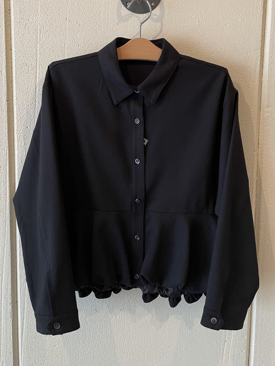 audrey and john wad ツイード風裾ギャザーブラウス black SH-022